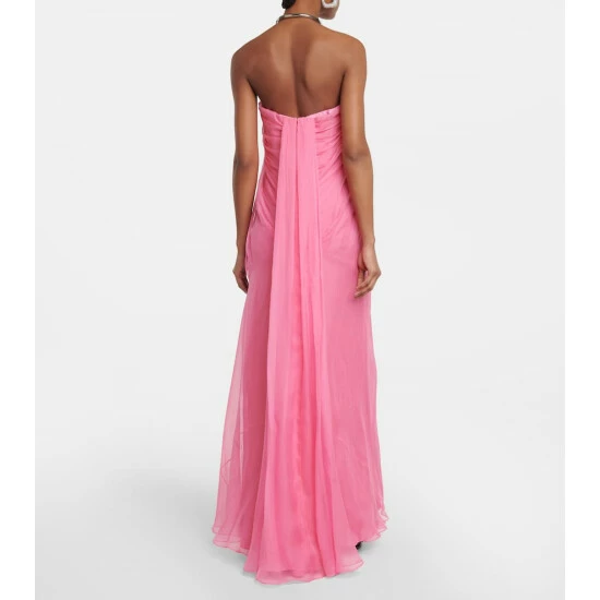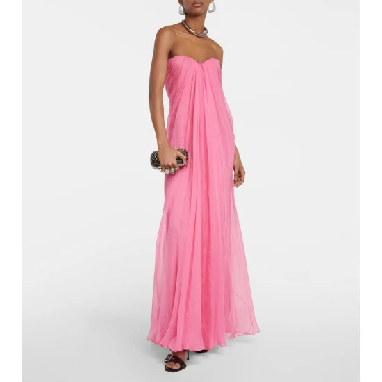 Make an unforgettable entrance at your next event in this Alexander McQueen gown. Shaped with a romantic sweetheart neckline, it’s made from layers of organically cultivated silk chiffon with an elegant drape detail at the cinched back.