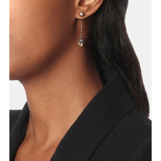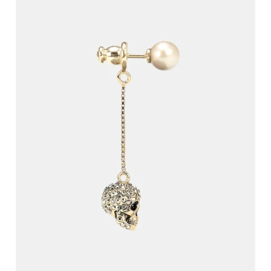 These skull earrings from Alexander McQueen are a subversive evening accessory. The house’s insignia of choice for over two decades, the skulls are cast in bronze-toned metal with pavé crystals and faux pearl ear posts. Complete the look with an equally-iconic Four Ring clutch.