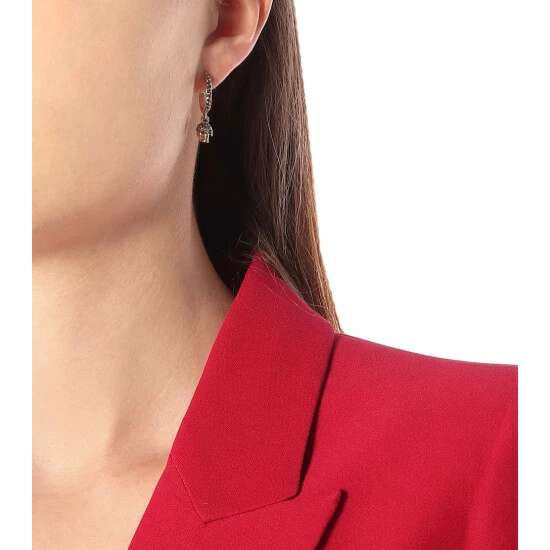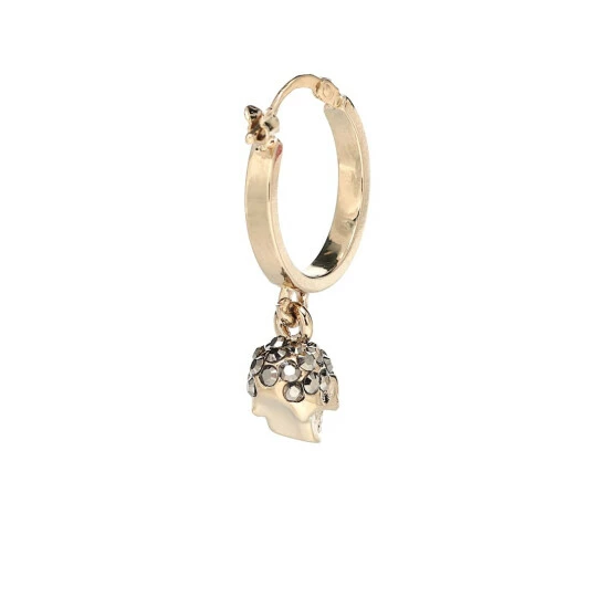 This pair of earrings from Alexander McQueen comes with a dose of punk attitude thanks to their dangling skull charms and luxurious golden finish. Crafted in Italy, the suspended pendant is adorned with Swarovski crystals for statement sparkle. Wear this hoop silhouette against after-dark ensembles with swept-back hair.