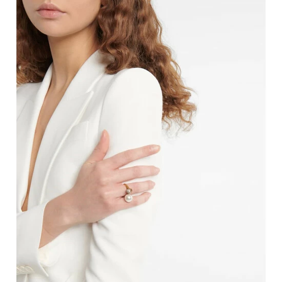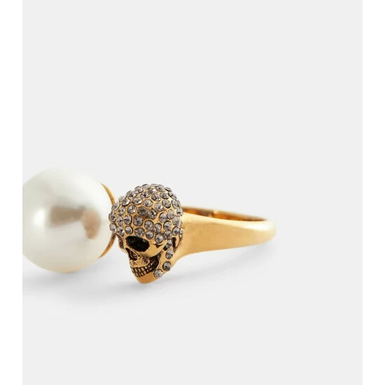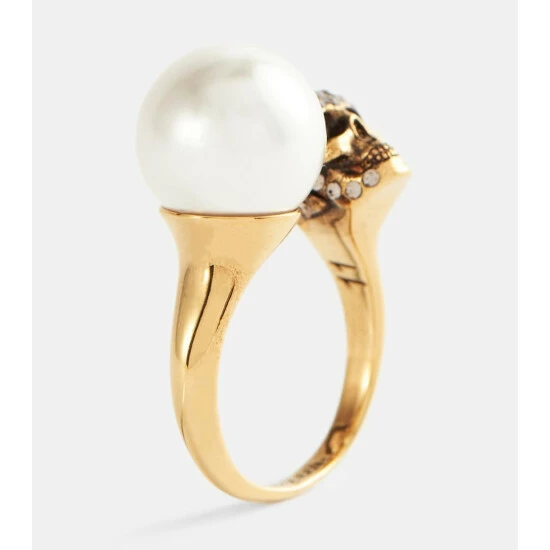 This ring from Alexander McQueen is characterized by romanticism with a touch of the macabre. Made from brass with a faux pearl and Swarovski crystal-embellished skull, it’s sure to stand out on your ringstack.