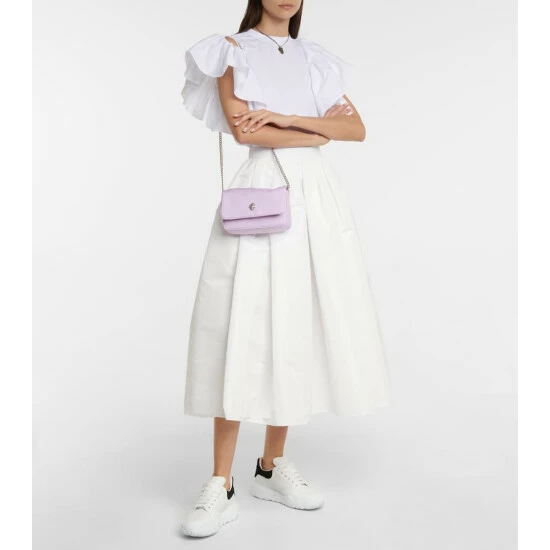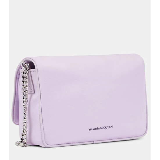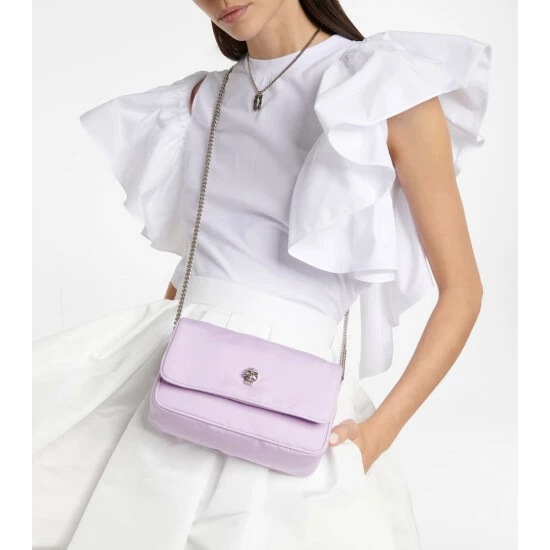 A compact design, this small lilac purple shoulder bag from Alexander McQueen is an excellent evening companion. It’s finished with silver hardware: the brand’s signature Skull hardware, and a coordinating chainlink strap.