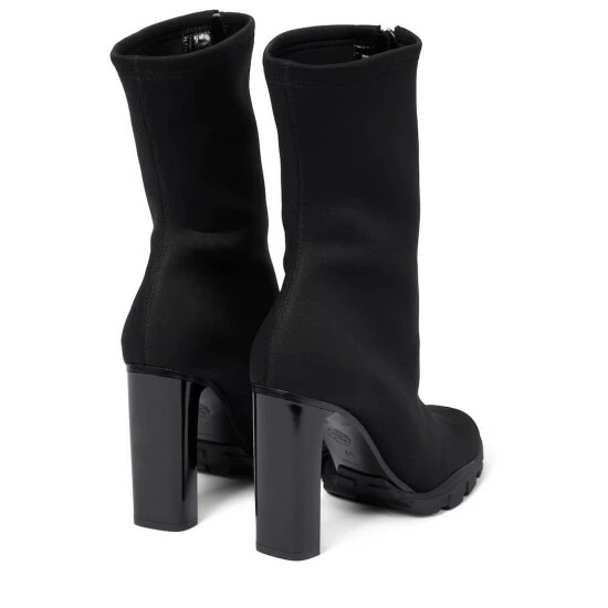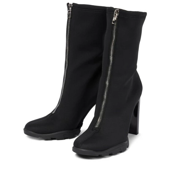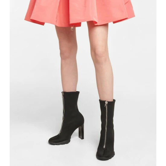 Elevate your ensemble with Alexander McQueen’s Slim Tread ankle boots. They’re made from sock-like scuba fabric and rest on lacquered leather heels and sneaker-inspired rubber outsoles.