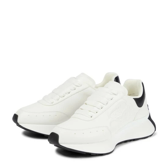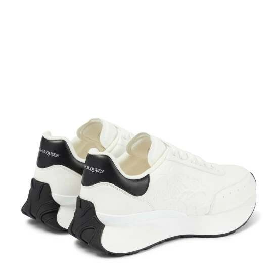 Fit to conquer any terrain, Alexander McQueen’s Sprint sneakers sit on wide, chunky runner soles that run up the heels. They’re made from white leather with tonal logo embossing on the lateral sides.