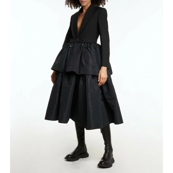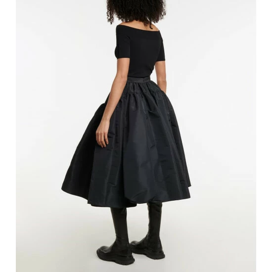 Alexander McQueen’s Pre-Fall ’21 lookbook sees ultra-voluminous styles, such as this black midi skirt, contrasted with form-fitting separates for a study in contrast. Made in Italy from taffeta, this piece is sits high on the waist and is gathered at the sides, resulting in added volume.