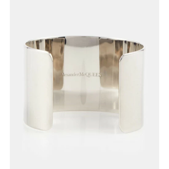 Made from brass with an antiqued silver-tone finish, Alexander McQueen’s arm cuff has a wide band and logo engraving.