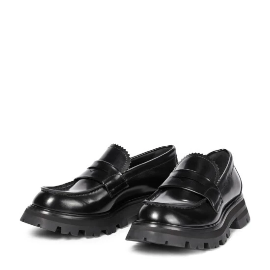 These black Wander loafers from Alexander McQueen are a dramatic take on the traditional penny silhouette. Made in Italy from polished calf leather, they’re defined by zigzag trims and exaggerated rubber tread soles.