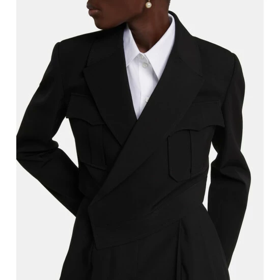 This blazer from Alexander McQueen is made in Italy from wool and cotton. It’s expertly tailored in Italy and features a cinched waist with strong shoulder and breast pockets.