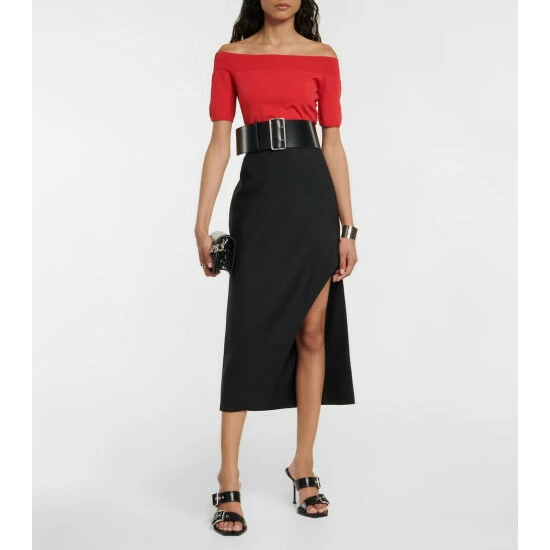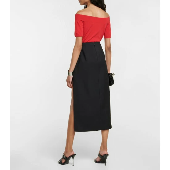This black midi skirt from Alexander McQueen is the perfect partner to one of the label’s tailored blazers. It’s made in Italy from wool and mohair with an off-center thigh-high side slit.