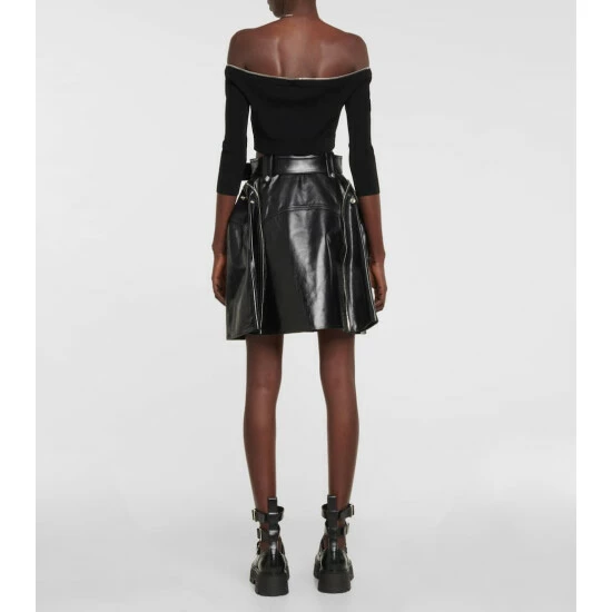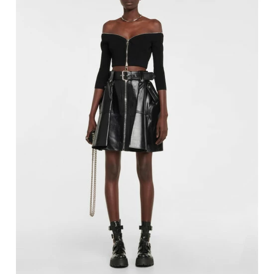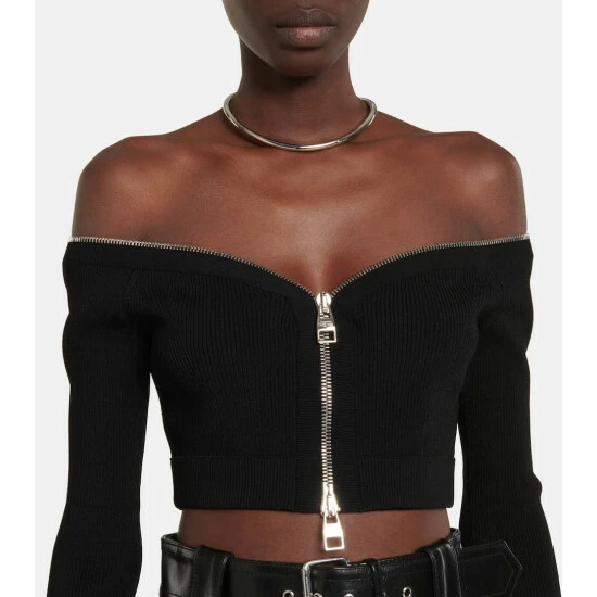 Alexander McQueen makes a case for decorative zippers with this top. Cropped to a waist-baring length, this design is made from a compact ribbed knit with a flattering off-shoulder neckline.